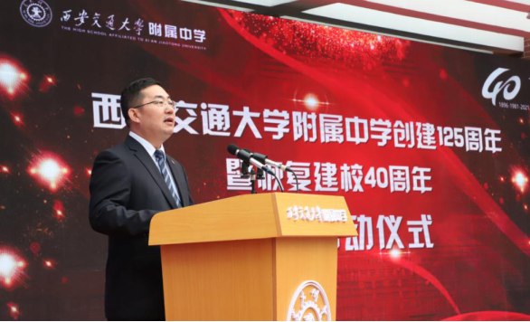 訾艳阳表示,交大附中的发展史既是一部创业史,更是一部奋斗史。124年来,交大附中的发展始终和交通大学同呼吸共命运,和国家民族发展同向同行,一大批附中毕业的优秀学子,在各条战线上为国家的自立自强、繁荣进步做出了卓越贡献。举办校庆的目的就是为了思古怀今、继往开来,充分挖掘交大附中优秀传统办学智慧,凝聚多方资源,以形成推动附中向更高品质跨越的强劲动力。