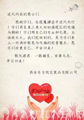 “各位白衣天使,你们好!我是本次航班的机长,今天是元宵佳节,祝大家节日快乐、平安、吉祥。我们将在6:40到达武汉,武汉的天气是晴天,温度为8度。截至今天,我已经安全飞行了近16,000小时,党龄21年。新春佳节之际,能够陪你们一起奔赴抗击疫情的最前线,我们全体机组成员感到非常的自豪与骄傲。西安交大医学人挺身而出的行动,充分体现了医学人崇高的精神境界与品格,值得我们学习和发扬。我们相信没有一个冬天不能逾越,没有一个春天不会到来。我父亲也在交大医学院校部工作,听说我直飞送大家去武汉支援的航班时,老人特地嘱咐我向大家道一声感谢,他作为一名老医务工作者,衷心为你们感到骄傲,请大家务必照顾好自己,平安归来。还有30多分钟就要到武汉了。因为有你们的最美前行,因为有全国人民的万众一心,我们相信一定能够尽快打赢这场疫情防控阻击战。在此,我们谨代表东航全体员工向你们致以最高的敬意!请你们一定要注意自我防护,在照顾他人的同时也务必照顾好自己。 祝大家早日凯旋,我们再接你们平安回家。武汉加油!中国必胜!”