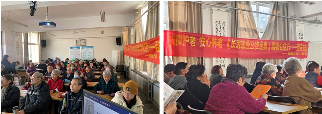 为向离退休教职工普及法律知识,提高知法、懂法、守法、用法的能力,助力老同志更好维护自身合法权益,在我国第十一个国家宪法日之际,西安交大离退休工作处联合泰康之家·秦园高品质养老社区分别在医学、财经校区离退休活动中心开展“‘法律护老安心养老’《长寿家业法律宝典》助老公益行”活动。70余位有涉老法律知识需求的离退休老同志参加活动。