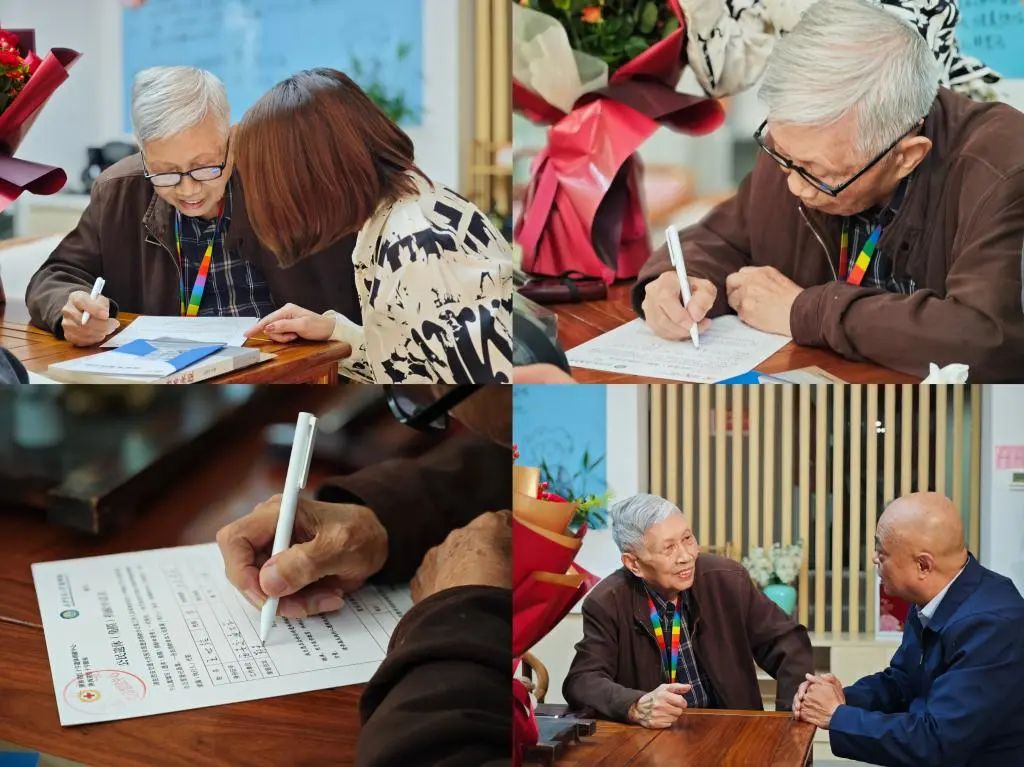 2024年重阳佳节前夕,西安交通大学医学部的工作人员手捧鲜花,走进西安市鄠邑区一所朴素的养老院。暖阳斜映中,西安交大原纪委副书记王世绍老师正代表自己与老伴仇启真,郑重地签下《公民遗体(角膜)捐献申请表》。